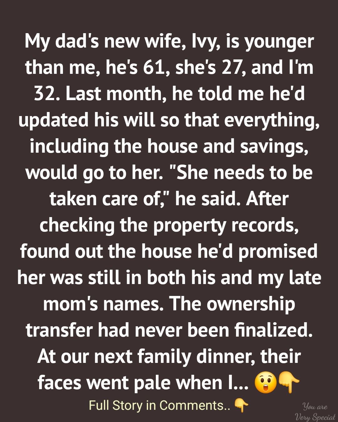 I told Dave that I had a work event and would be home late. In reality, I went to his mom's house. She was a wonderful woman and I wanted to ask her for advice. When I arrived, she welcomed me in with open arms.