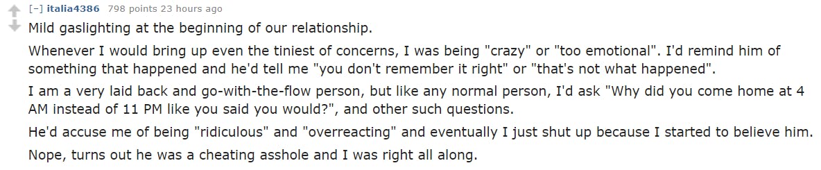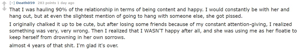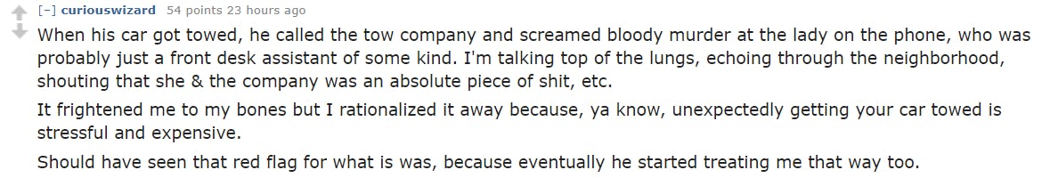 There's no need to beat yourself up over it, though: it's always easier to recognize patterns of bad behavior from the outside looking in — and a recent AskReddit thread emphasizes just how easy and common it is for people to miss red flags in their own relationships. Users' stories of the red flags they ignored (and how those relationships later went awry) are all the proof you need that sweeping problems and bad behaviors under the rug will not do your relationship any favors in the long run.