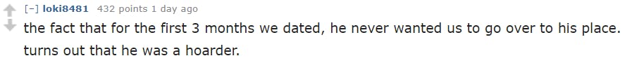 OK, so not everyone you meet will be a hoarder, but if someone you're dating blatantly avoids bringing you home for some reason, listen to your gut if something feels off.