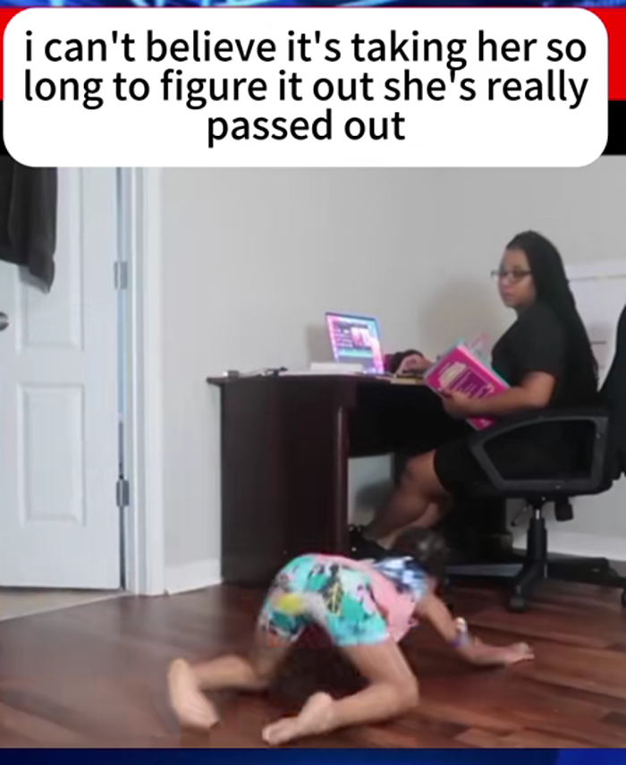 The caption reads, “I can’t believe it’s taking her so long to figure it out—she’s really passed out,” perfectly summing up the moment. Viewers couldn’t get enough of the contrast between the child’s sneaky determination and the mother’s unshakable concentration.
