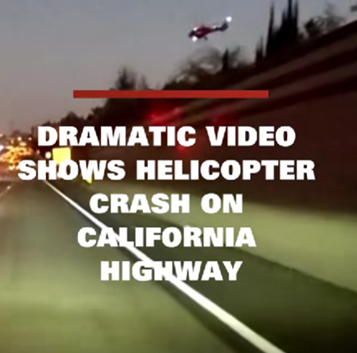 A terrifying scene unfolded on a California highway when a helicopter suddenly spiraled out of control and crash-landed between moving vehicles. Dashcam footage captured the heart-stopping moment, showing the aircraft descending rapidly before colliding with the pavement — narrowly missing several cars and sparking a wave of panic among drivers.