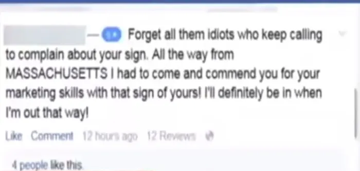The sign has gone viral on social media, often taking criticism and outrage from the local residents, saying that the sign was giving young girls a message that just wasn’t right.