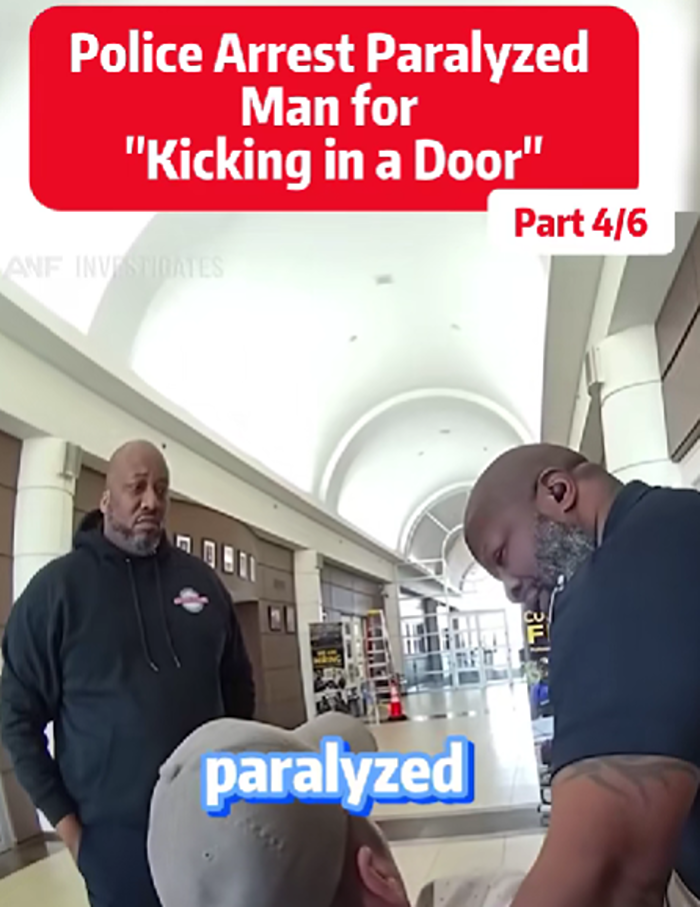 A controversial arrest caught on camera has sparked outrage after police were seen detaining a paralyzed man accused of “kicking in a door.” The incident, which unfolded inside a public building, has drawn widespread criticism and raised questions about law enforcement’s handling of disabled individuals.