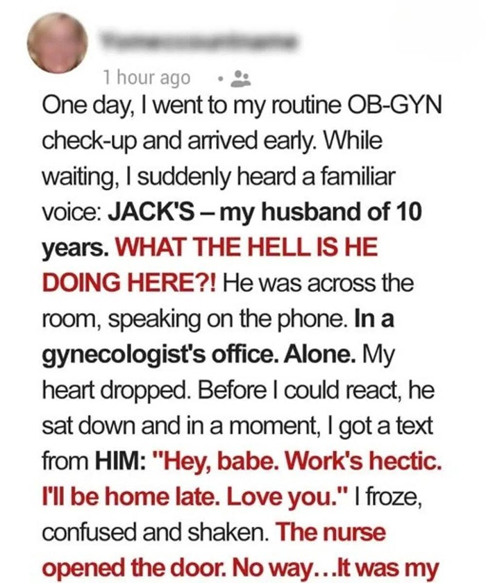 Because she was too embarrassed and scared to deal with it alone, she had turned to Jack for discreet support, and he had gone with her to the clinic to make sure she wasn’t alone.