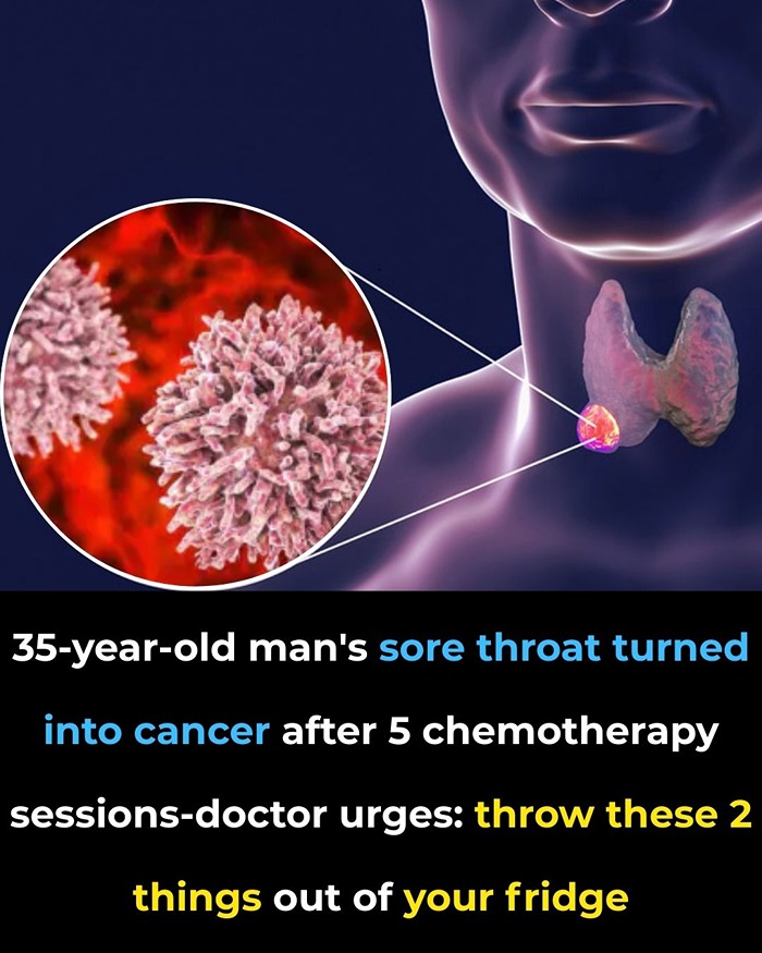 When 35-year-old Minh, a seemingly healthy office worker, first developed a persistent sore throat, he dismissed it as a common cold or the result of long work hours and stress. He treated it with lozenges and home remedies, expecting it to go away in a few days. But weeks passed, and the soreness didn’t improve—it worsened. By the time he finally went to a specialist, the diagnosis was shocking: stage 2 throat cancer. After undergoing five intense sessions of chemotherapy, his doctor shared not only advice about recovery—but also an unexpected warning. “If you want to protect yourself and your family, throw away these two things from your fridge immediately,” the doctor said.