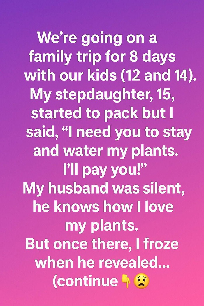 My 15-year-old stepdaughter, Chloe, had begun packing when I gently asked her to stay behind and water my plants.
