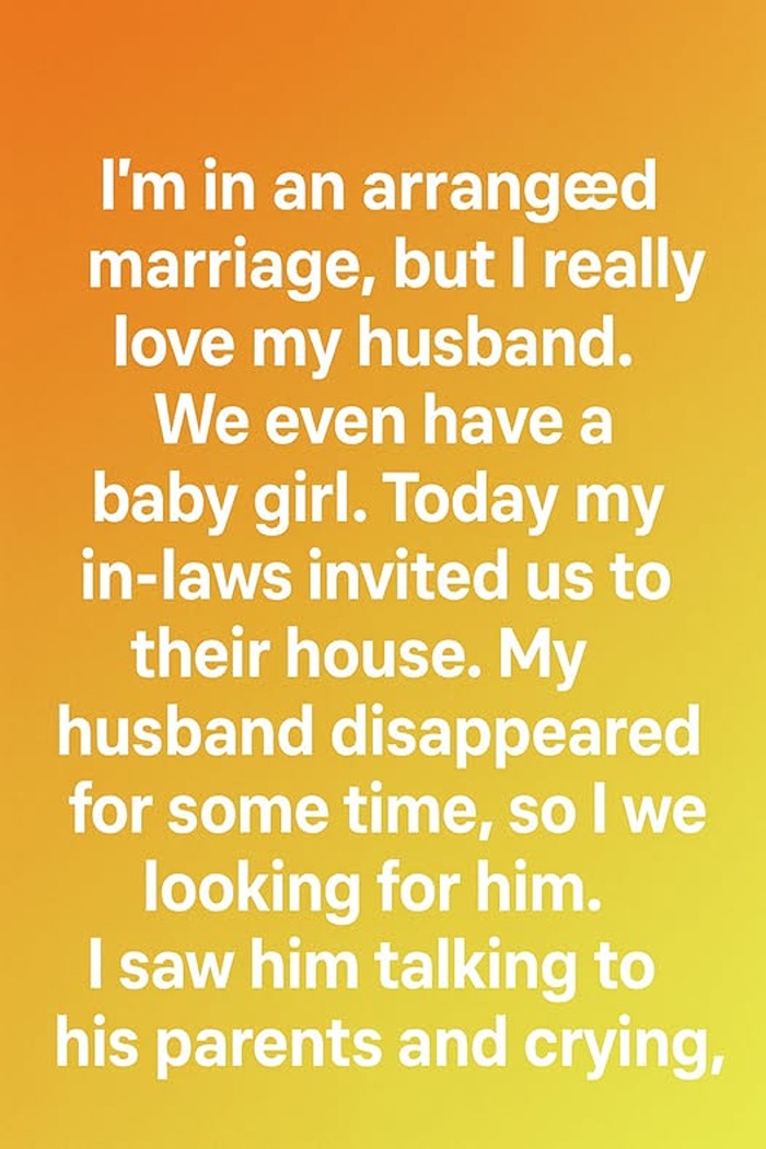 I’m in an arranged marriage, but I really love my husband. We even have a baby girl. Today my in-laws invited us to their house.