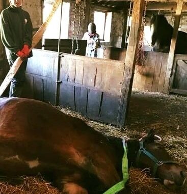 The incident took place in a stable in Somerset, England, when a shire horse took a sudden turn for the worst and needed immediate attention.Beatrice is a 16 year old shire horse, a British species of draft horses. One day she came down with equine colic, which causes extreme abdominal pain.