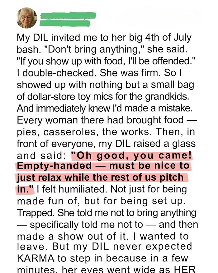 The yard went silent. Karen froze, unable to respond, while a few guests chuckled. Emma added,