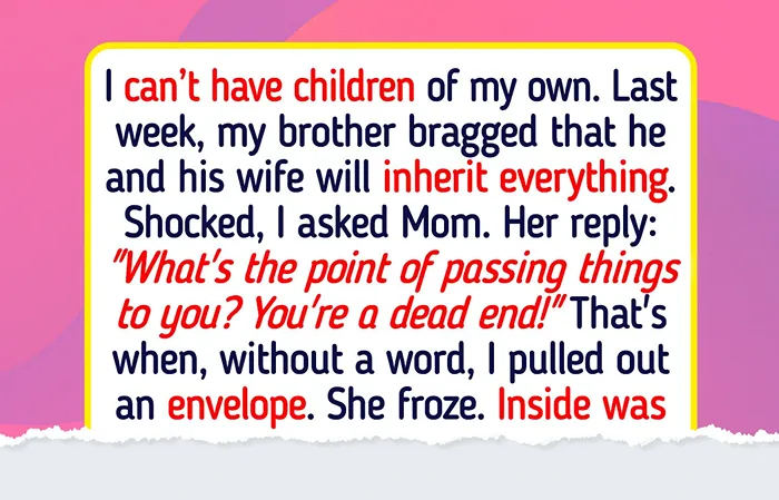 Last month, my brother casually mentioned he and his wife would be inheriting everything. I was confused, so I asked my parents. That’s when my mom told me straight up, “You chose a lifestyle that ends with you. What’s the point of passing things to you? You’re a dead end!”
