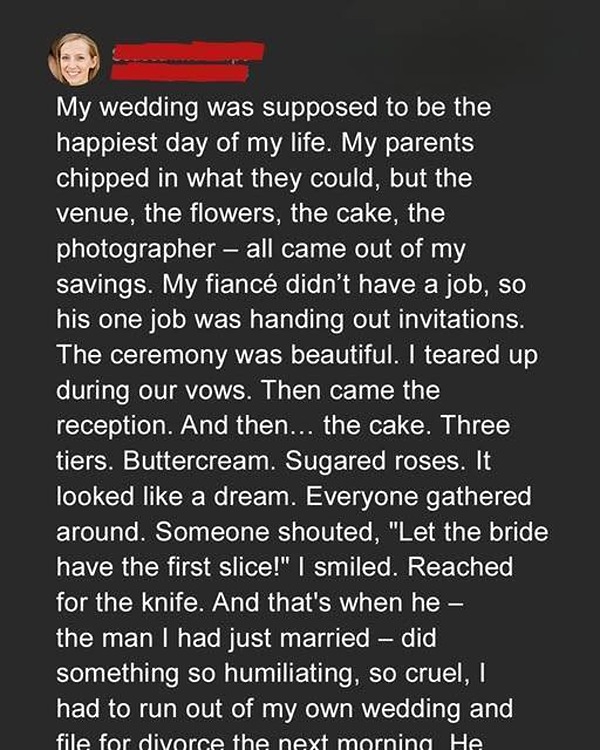 His cruelty was clear; he had chosen to humiliate me on what was supposed to be the happiest day of our lives, and when I stood up for myself, he turned it all back on me.