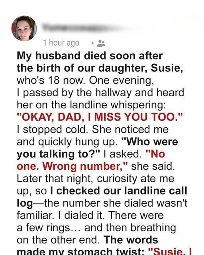 One quiet evening, as Allie walked down the hallway, she heard her daughter’s voice from behind a slightly open door. Susie was on the house phone, speaking in a hushed, tender tone. Allie paused when she heard the words:
