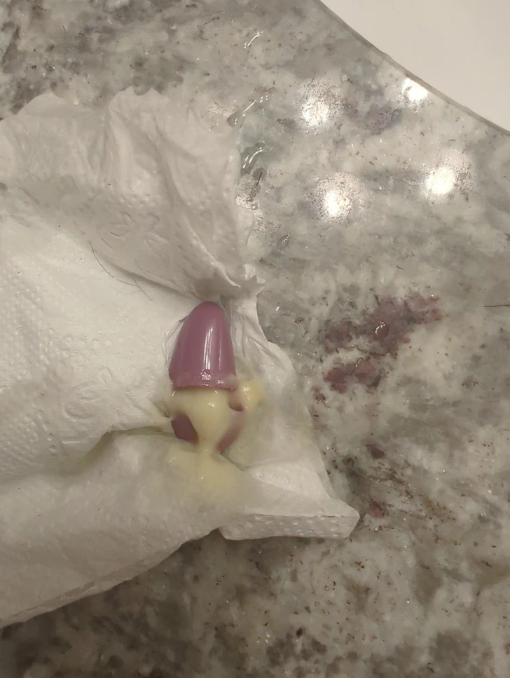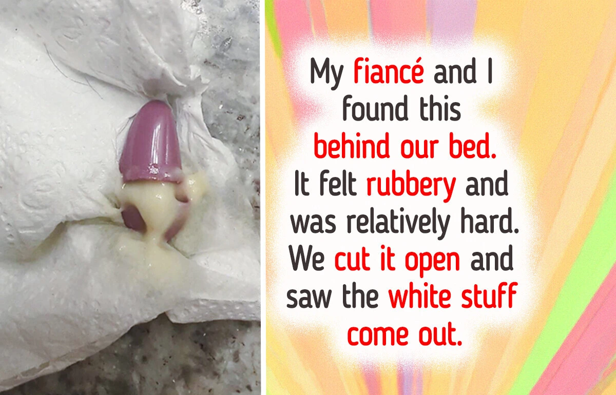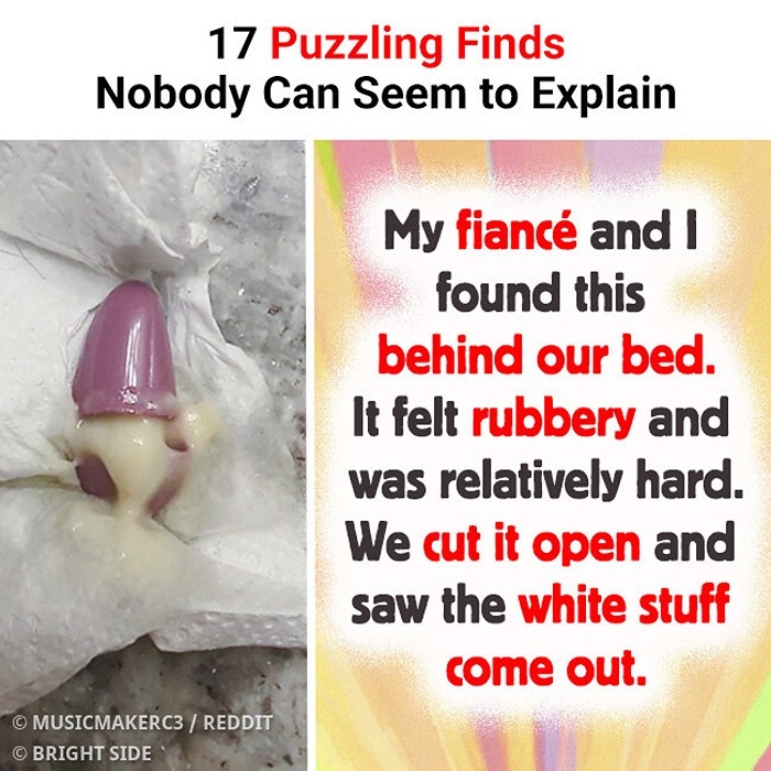 17. “My fiancé and I found this behind our bed. It felt rubbery and was relatively hard. We cut it open and saw the white stuff come out.”