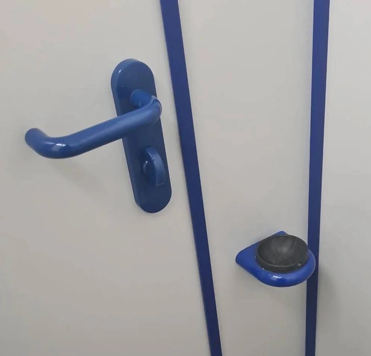 2. “Holder with rubber padding next to the door inside the toilet stall.”
