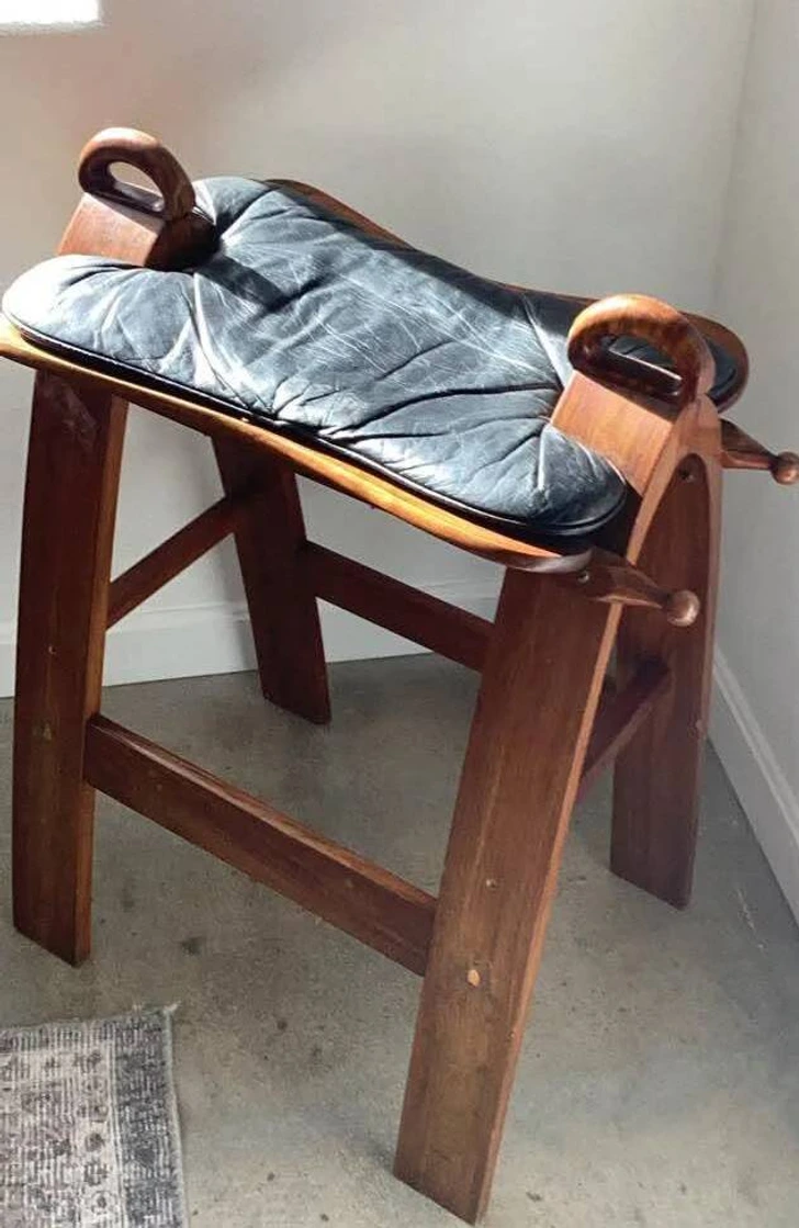 8. “A family friend was staying at a rental home and was wondering what this strange wooden and leather stool with loops could be.”