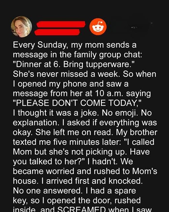 So when I woke up that Sunday morning to a text that simply read, “Please don’t come today,” I knew something was off. No smiley face, no context—just seven words that felt like a slap. My gut twisted as I stared at my phone. I texted back instantly. No response. Then Brian messaged me: “She’s not answering. I’m heading over.” I was already grabbing my keys.