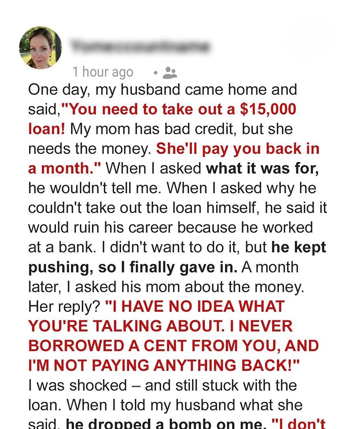 Then one night, Andrew begged me to take out a $15,000 loan for his mom.