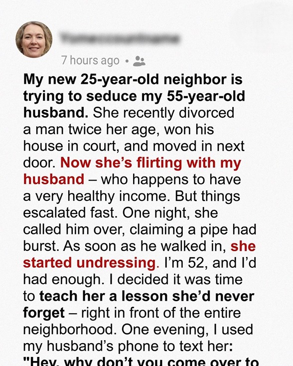 At 52, I thought I’d seen every trick in the book when it came to husband-stealing drama queens. Boy, was I wrong. My new neighbor, a freshly divorced, young yoga Barbie, tried turning my husband into her next accessory.