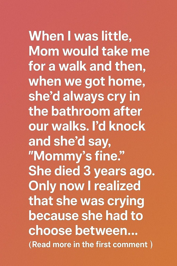 When I was little, Mom would take me for a walk and then, when we got home, she’d always cry in the bathroom after our walks