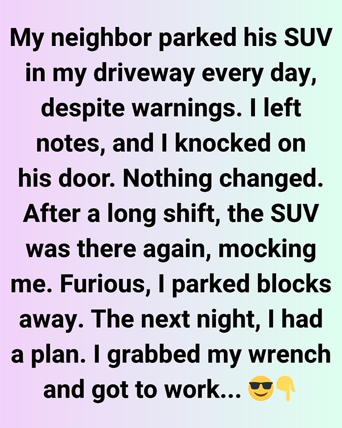 I’ve got this neighbor who treats my driveway like his personal parking spot. He drives a big black SUV and parks it there as if he’s marking his territory. The first time it happened, I figured it was an honest mistake.