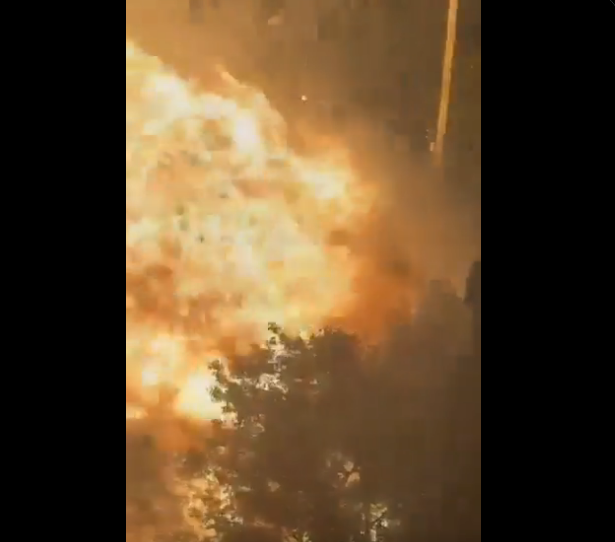 Witnesses describe a “massive boom” that shook nearby buildings as emergency crews were already battling intense flames. Video from the scene shows firefighters ducking for cover as the car erupts into a fireball, engulfing the area in thick black smoke.
