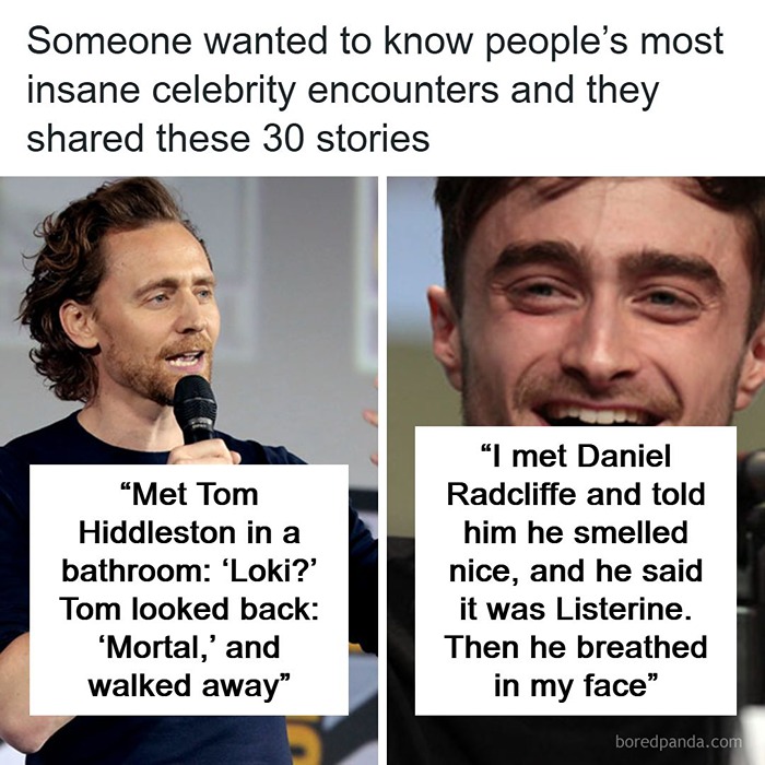 My friend met Tom Hiddleston in a bathroom, and while they were both washing their hands, my friend looked at him and said 'Loki?'