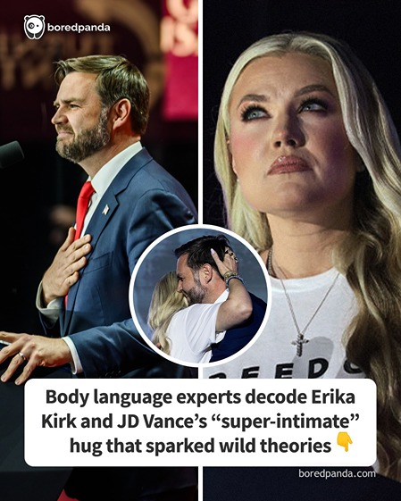 Body language experts stated that Erika Kirk and JD Vance’s hug showed that they were comfortable with each other
