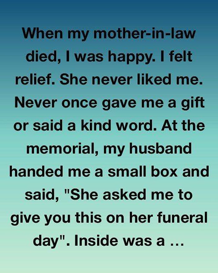 When my mother-in-law died, I expected grief or maybe guilt for the distance between us. What I didn’t expect was relief. She had never welcomed me, never shown me kindness, and every encounter carried an edge. At her memorial, while I busied myself keeping things in order, my husband handed me a small box. “She asked me to give you this,” he said.