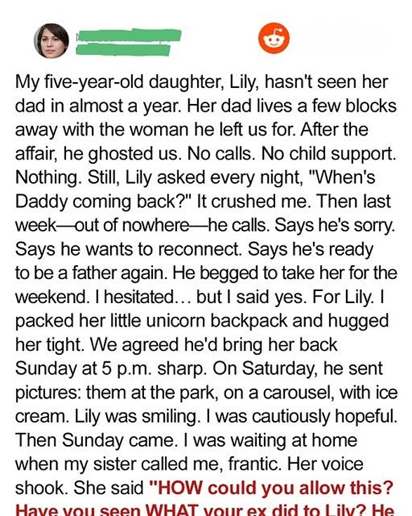 When my ex-husband suddenly said he wanted to reconnect with our daughter, I thought maybe he was finally ready to be the father she deserved. I could never have imagined the real reason behind his sudden interest. The truth made my blood boil.