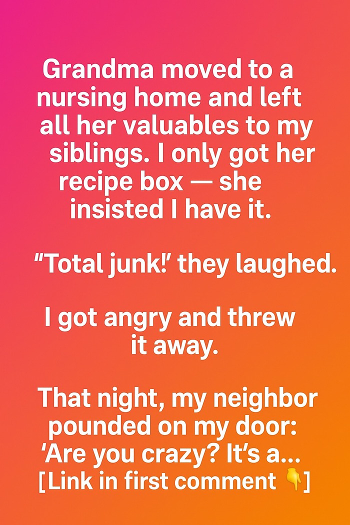 When my grandmother moved into a nursing home, she gave her jewelry and antiques to my siblings. To me, she left only a small wooden recipe box. At first, I didn’t understand why she insisted that it should be mine. My siblings laughed and called it “junk,” and their words stayed with me. Feeling upset, I left the box aside without thinking twice.