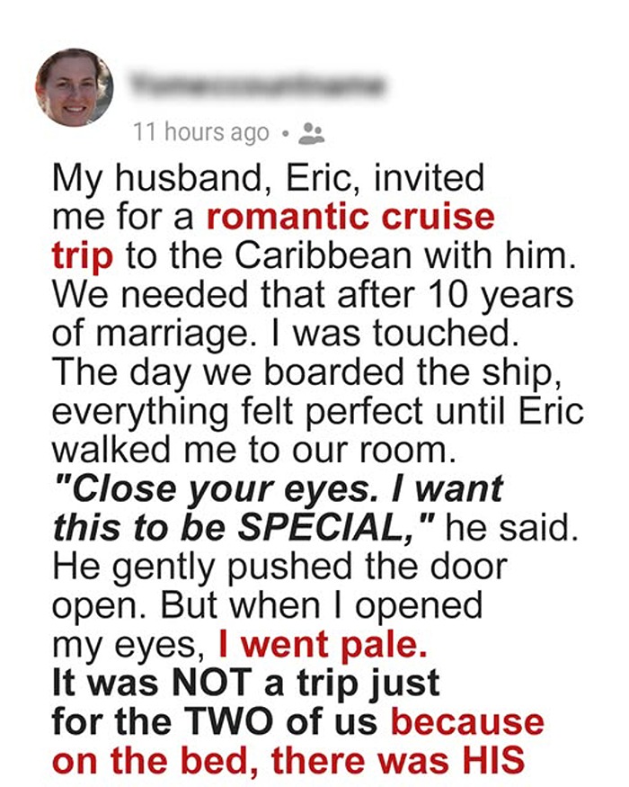 “And this cruise?” I continued, feeling like I was conducting an interview rather than discovering my husband’s infidelity. “What did he tell you about this cruise?”