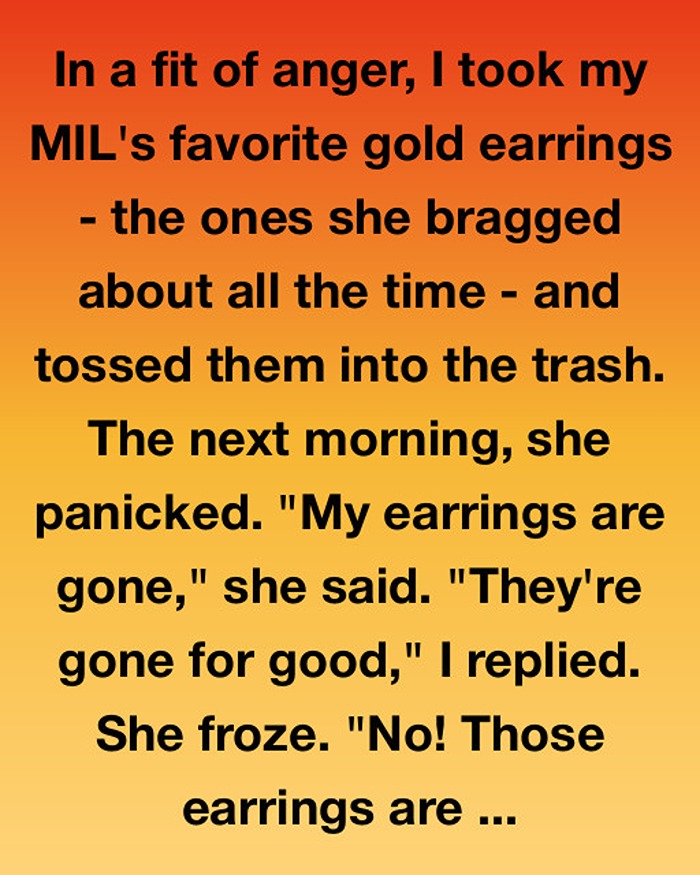 The next morning she stood at the doorway, wringing her hands. “My earrings are gone,” she whispered. “They’re gone for good.” I should’ve expected the theatrics. I didn’t expect her voice to crack. “Those earrings are the last thing I have from my mother.” The words landed like a stone in my gut. I was ready for a fight; I wasn’t ready for grief.