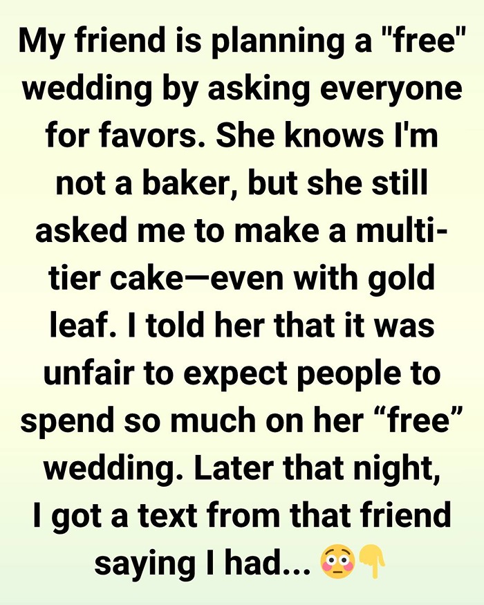 She explained that she’s been inspired by TikTok and Instagram videos about planning “free” weddings—where the couple supposedly spends nothing (aside from the marriage certificate fee, of course). At first, I assumed she meant something simple, like a city hall ceremony, which would’ve been totally fine. But then she started describing the details and her expectations, and things took an unexpected turn.