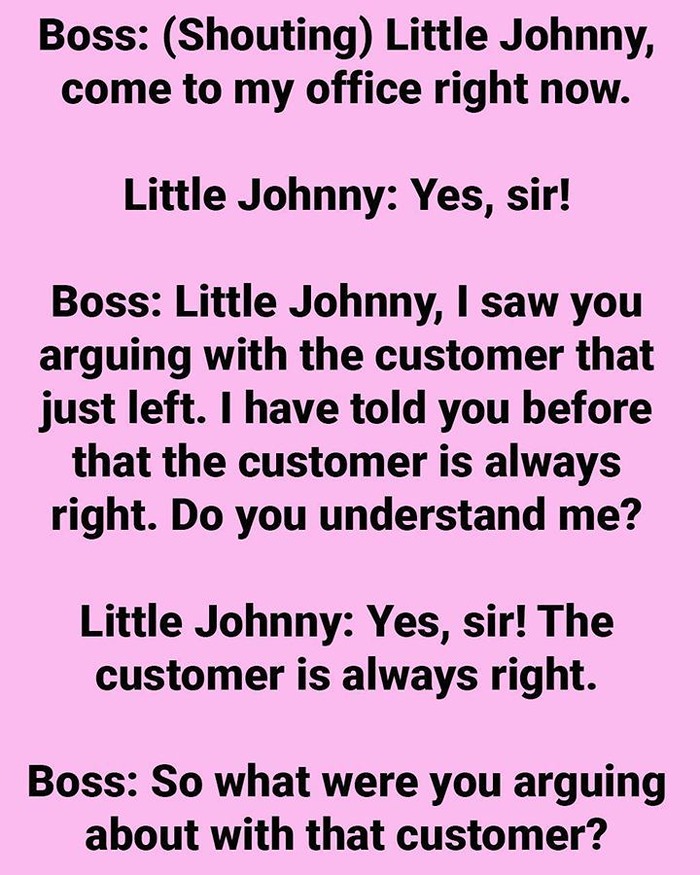 Johnny nodded so hard his hair moved. “Yes, sir. The customer is always right.”
