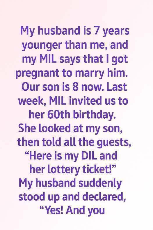 I never thought age would be such a big deal. My husband is seven years younger than me, and while that difference means nothing to us, it has meant everything to his mother. From the very beginning, she made her disapproval clear — through small remarks, long glances, and those loaded silences that say more than words ever could.