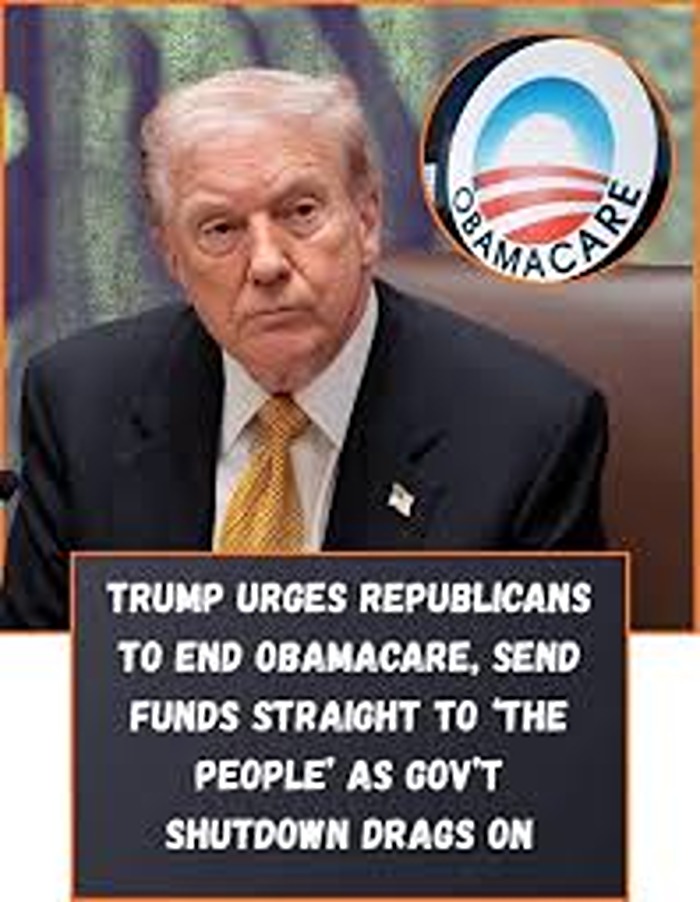 President Trump urged Senate Republicans Saturday to end Obamacare and send federal health care spending “directly to the people,” as the federal government shutdown stretched into its 38th day.