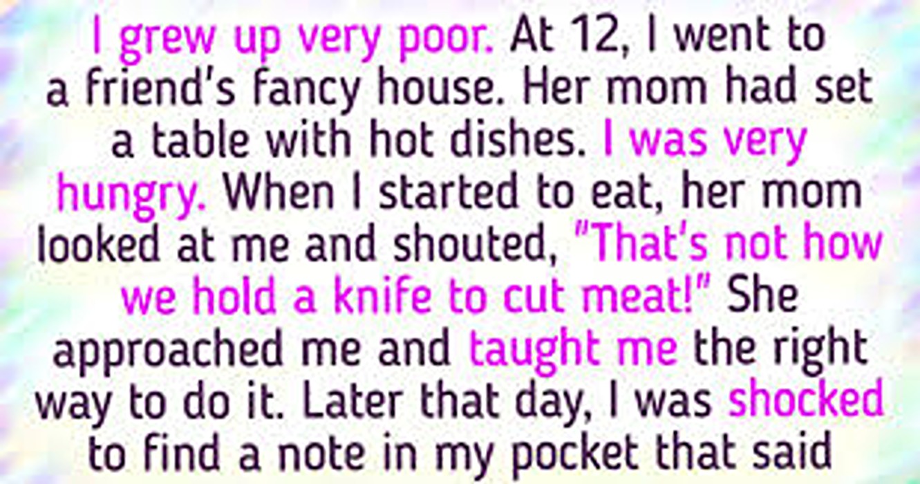 Later that day, when I got home, I found a note in my pocket that said, ‘Our doors are open for you. You can come over for dinner anytime.’ For a whole year, I went to their house once a week to enjoy their meals. I will always be grateful to my friend’s family. As we grew up, we drifted apart, but I will never forget their kindness.”