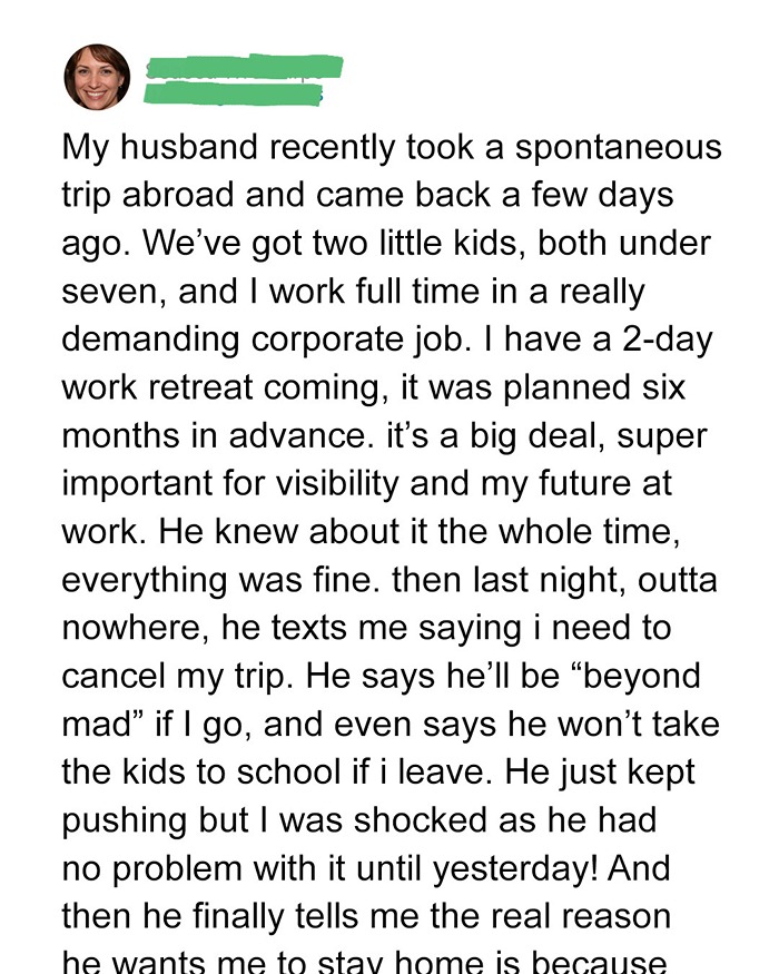 Over the years, I had quietly adjusted my plans for his convenience many times — missed dinners, skipped social events, postponed short work trips — all to keep the peace. But this retreat wasn’t optional. It represented everything I had worked toward professionally.