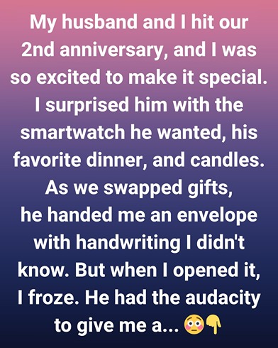 My husband and I just celebrated our second wedding anniversary, and I wanted it to be special. I spent days planning everything — I cooked his favorite dinner, set the table with candles, played soft music, and even surprised him with the smartwatch he’d been eyeing for months. I wanted the evening to feel magical — a quiet escape from our busy lives, and a way to remind him just how much I love and appreciate him.