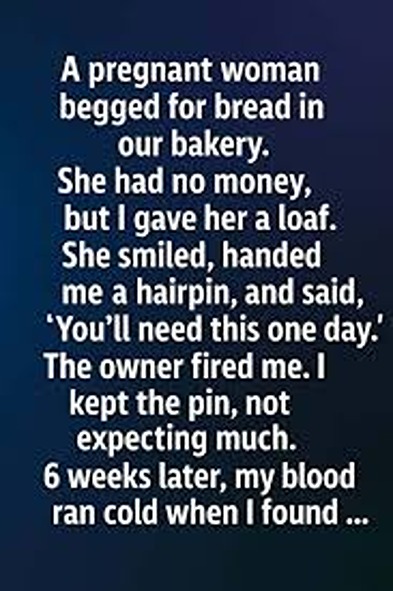 It was just another gray morning at the bakery, the kind where the smell of fresh bread hides the exhaustion behind every smile. I was wiping down the counter when a young pregnant woman came in, her face pale, her hands trembling. “Please,” she whispered, “just one loaf. I’ll pay you later.” The rules were clear — no payment, no product. But something in her eyes made me ignore the rulebook. I handed her a warm loaf, and she pressed a small silver hairpin into my palm. “You’ll need this one day,” she said softly before disappearing into the street. Minutes later, my boss saw the empty register and fired me on the spot. I walked home with tear-streaked cheeks, holding nothing but that hairpin and the faint hope that kindness still mattered.