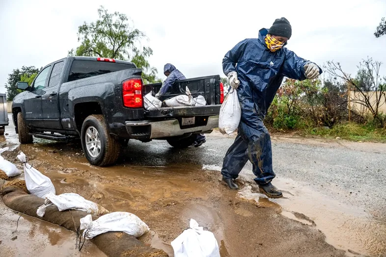 LOS ANGELES—An unusually strong storm system called an atmospheric river doused Southern California on Saturday, prompting flood warnings in areas of coastal Los Angeles County that recently were ravaged by wildfire.