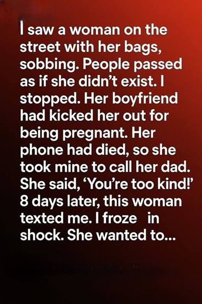 I sat staring at the picture for a long time. It wasn’t about me. It was about the fact that hope can come from anywhere—even from a stranger on a street corner who decided to stop instead of keep walking.