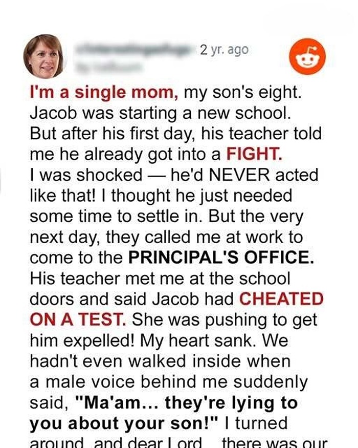 “I probably shouldn’t say this,” he whispered, “but… they’re lying to you. Your boy didn’t do anything wrong. The teacher—Ms.