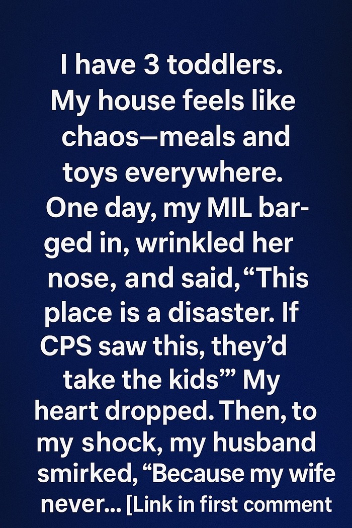 My MIL blinked in surprise, caught off guard. I didn’t expect him to defend me so fiercely. The toddlers came running in, two with mismatched socks and one still wearing last night’s pajamas.