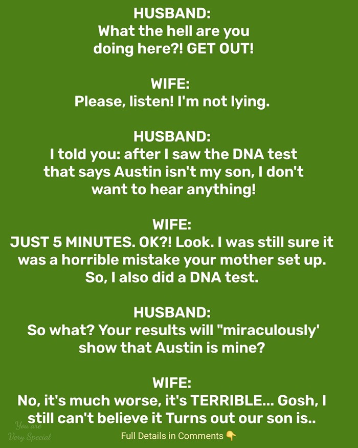 I already told you—after I saw the DNA test saying Austin isn’t my son, I don’t want to hear anything else!