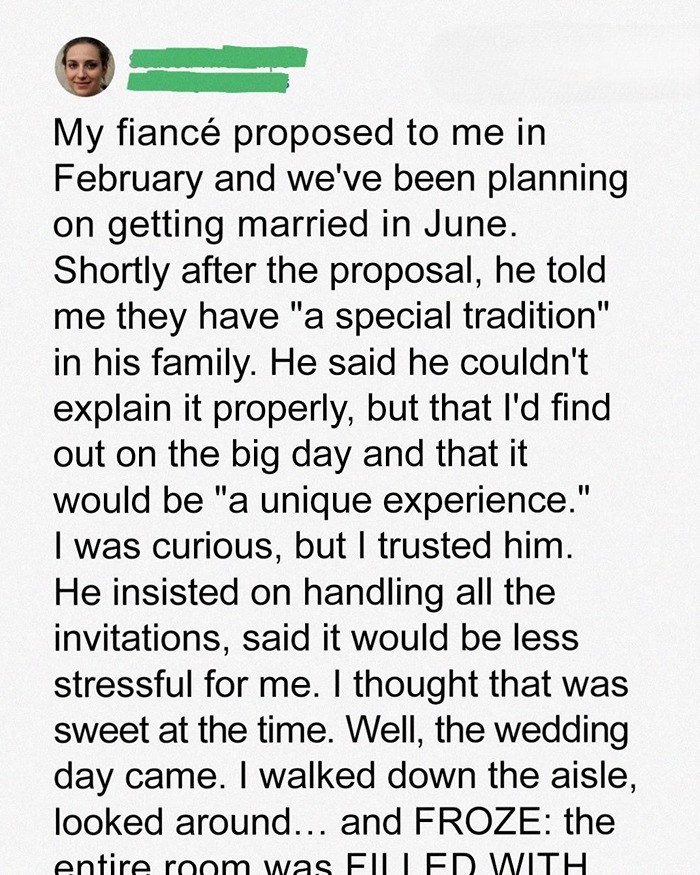 Luke raised his eyebrows and gestured for her to walk down the aisle, his smile unwavering. But the more he smiled, the more wrong everything felt.