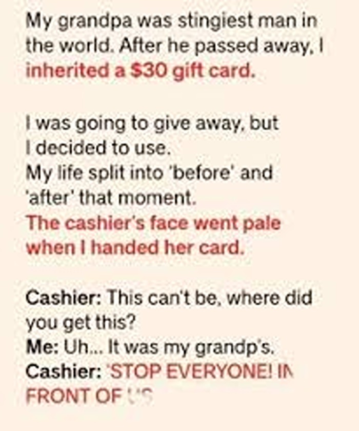 I stood there stunned as the store manager came over to confirm what I already knew to be true. My grandpa’s “stingy” gift turned into a fortune that changed my whole life and my future in an instant.