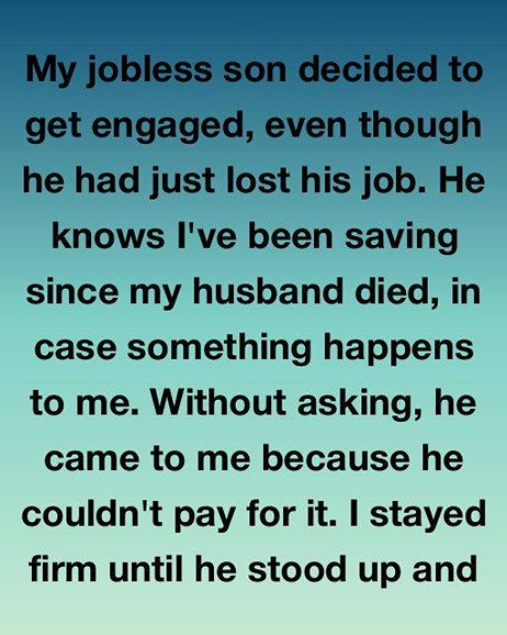 My jobless son decided to get engaged, even though he had just lost his job. He knows I’ve been saving since my husband died, in case something happens to me.