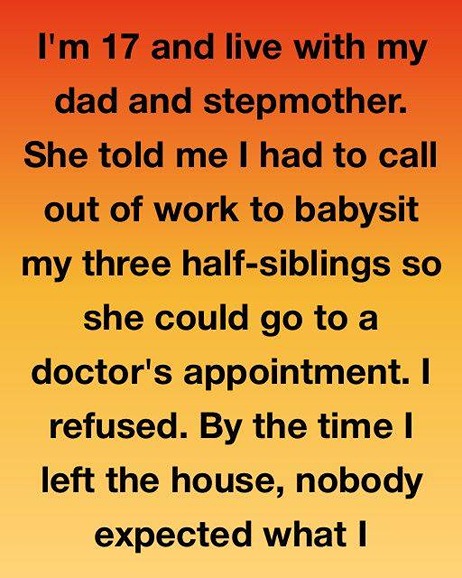 I’m 17 and live with my dad and stepmother. She told me I had to call out of work to babysit my three half-siblings so she could go to a doctor’s appointment.