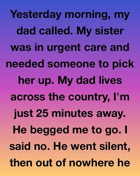 My dad lives all the way out in Oregon. I’m in Manchester—25 minutes from the hospital, tops. He begged me to go. I said no. He went silent, and then, out of nowhere, he started crying.That caught me completely off guard.